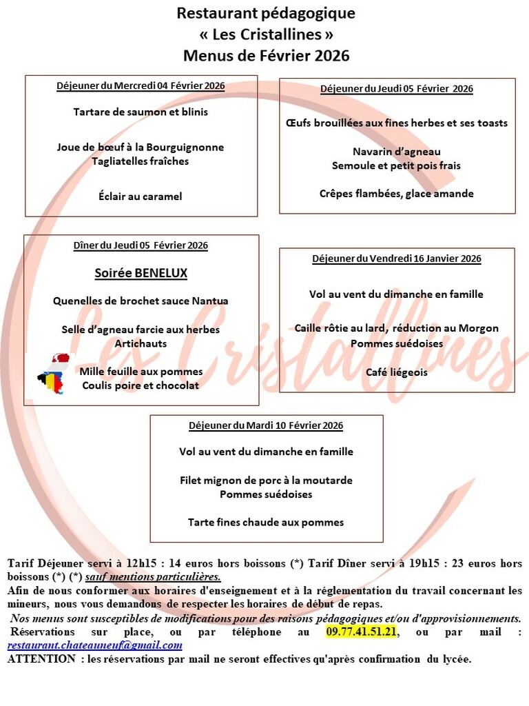 Le restaurant pédagogique les Cristallines est ouvert Réservation obligatoire.